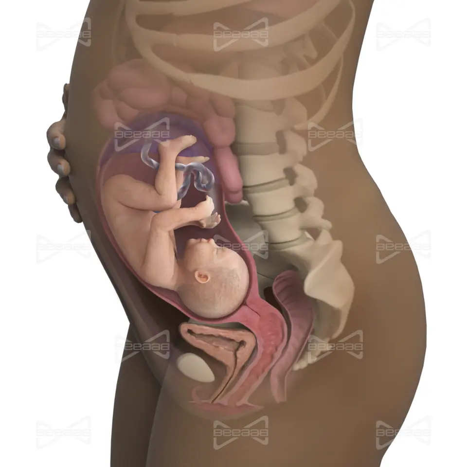 بررسی منظم فشار خون به منظور تشخیص زودهنگام پریاکلامپسی یا هیپرتانسیون بارداری بسیار مهم است. مانند هفتههای قبل، پزشک ممکن است از مادر بخواهد که به حرکتهای جنین توجه کند و آنها را شمارش کند. کاهش حرکتهای جنین میتواند نشانهای از مشکل باشد که نیاز به بررسی دارد. در این مرحله از بارداری، پزشک ممکن است دربارهی آمادهسازی برای زایمان، نشانههای زایمان زودرس و دیگر نکات مهم با مادر صحبت کند.
